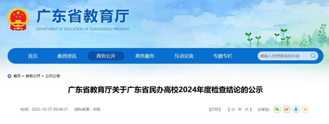 近日,省教育厅公示了广东省民办高校2024年度检查结论怀远股票,公示期自2025年10月27至2025年11月2日,共7天。